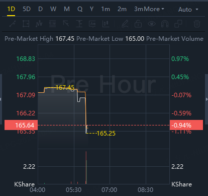 The stock was down about 1% to $165.64 in the premarket session Tuesday.