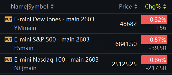 US stock futures slid on Tuesday. Nasdaq 100 futures down 0.86%; S&P futures down 0.57%.