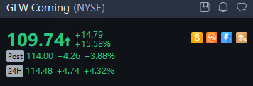Corning’s stock popped 16% on Tuesday, its best day in more than two decades.