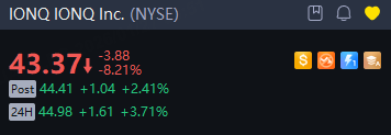 IONQ Inc.'s stock climbed 4% and SkyWater Technology, Inc. fell 3% in overnight trading.