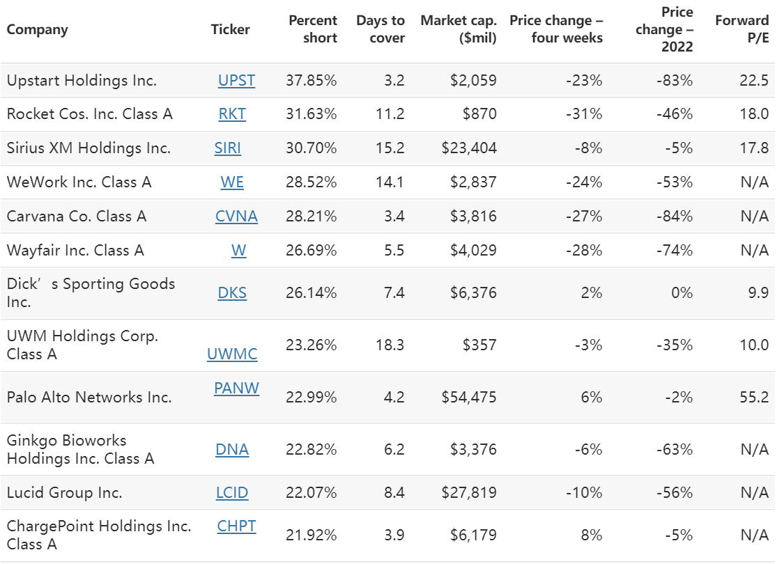 Most heavily shorted stocks