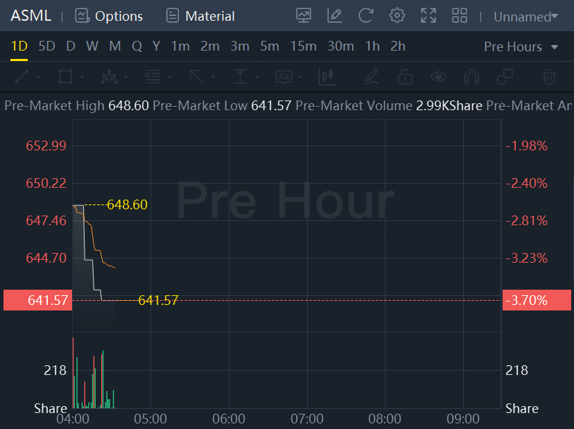 ASML Shares drop 3.7% in premarket trading Monday on the news ASML sees first big EUV equipment order cut from TSMC.