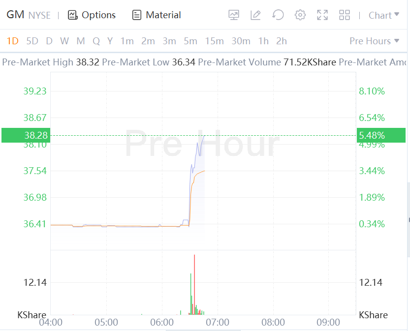 General Motors stock jumps over 5% in premarket trading.