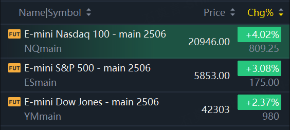 Nasdaq futures soared 4%; Dow futures jumped 2.3%.