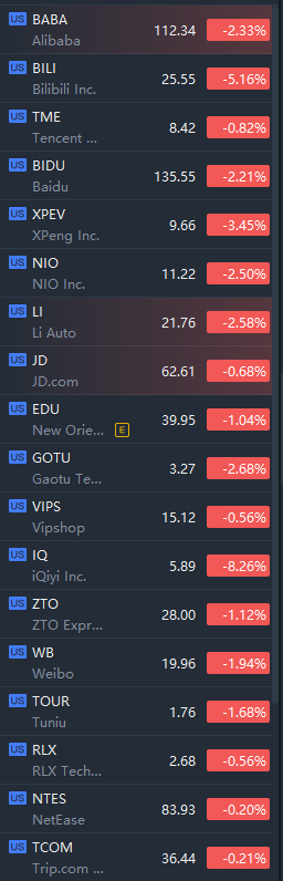 Hot Chinese ADRs turned down in morning trading; iQiyi Inc. fell over 8% while Bilibili Inc. slid over 5%.