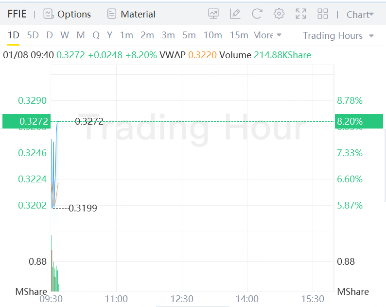 Faraday Future adds 8.2% in morning trading on Tuesday.