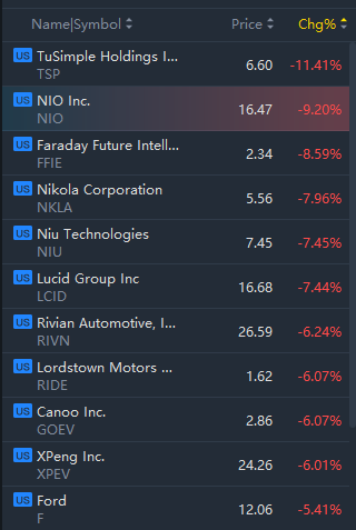 EV stocks slumped in morning trading, with Nio falling over 9% and Rivian falling over 6%.