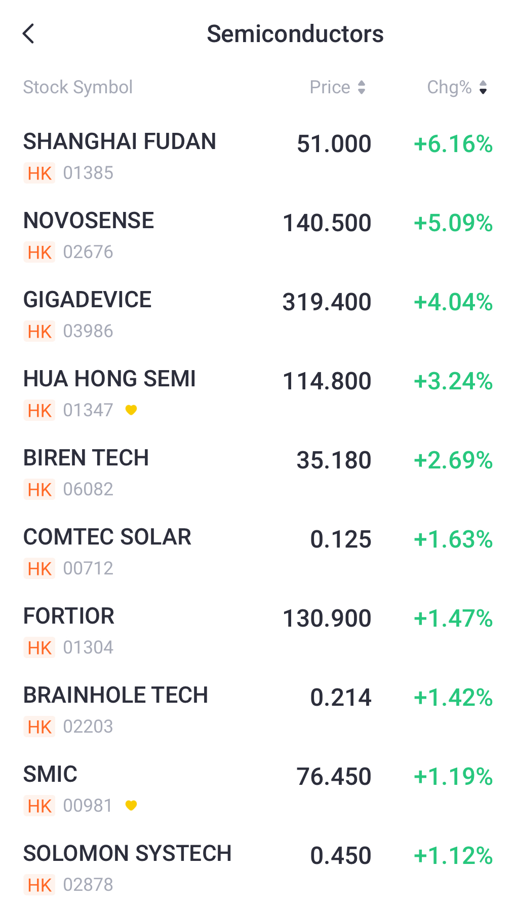 Semiconductor shares rallied in Hong Kong. Shanghai Fudan up over 6%; NovoSense up 5%; GigaDevice up 4%; Hua Hong Semi up over 3%.