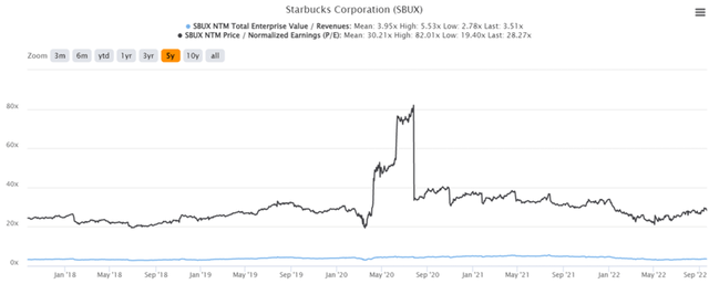 So, Is SBUX Stock A Buy, Sell, or Hold?SBUX 5Y EV/Revenue and P/E Valuations