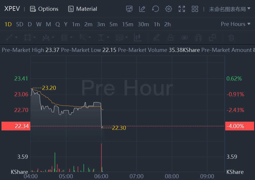 XPeng shares fell more than 4% after reporting its quarterly results.