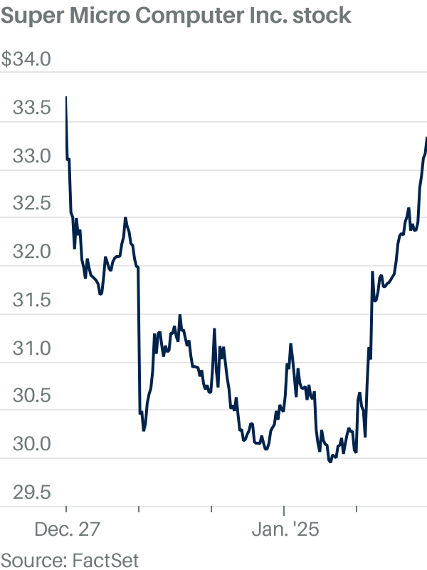 Its shares, which trade under the ticker SMCI, have climbed 10% in early trading Monday. The S&P 500 was up 1%.