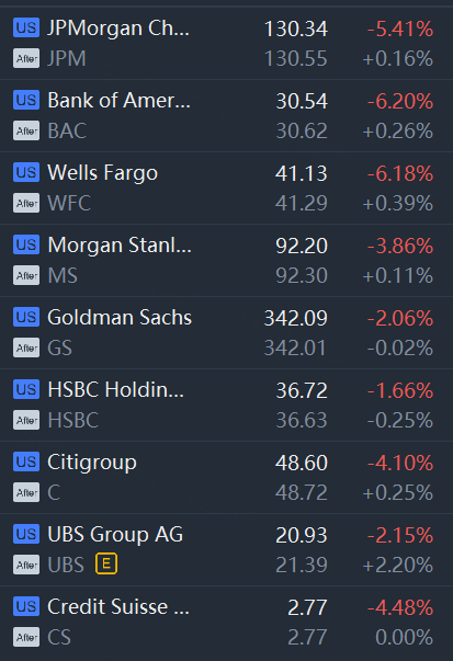 Major U.S. banks were also hit, with JPMorgan and Bank of America both down more than 5%.