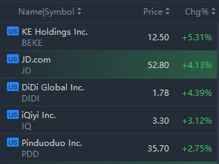Hot Chinese ADRs rebounded in morning trading,with KE Holdings rising over 5% and JD.com rising over 4%.