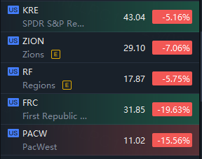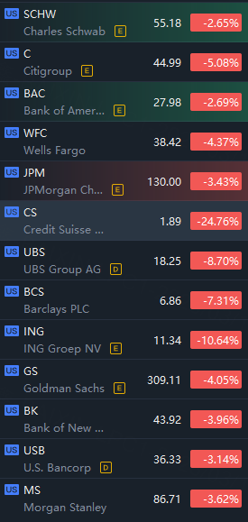 Regional and big banks tumbled in morning trading; Credit Suisse plunging 24% and First Republic slumping 20%.