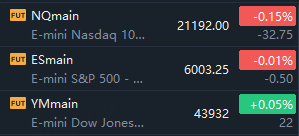 Dow E-minis were up 22 points, or 0.05%, S&P 500 E-minis were unchanged and Nasdaq 100 E-minis were down 32.75 points, or 0.15%.
