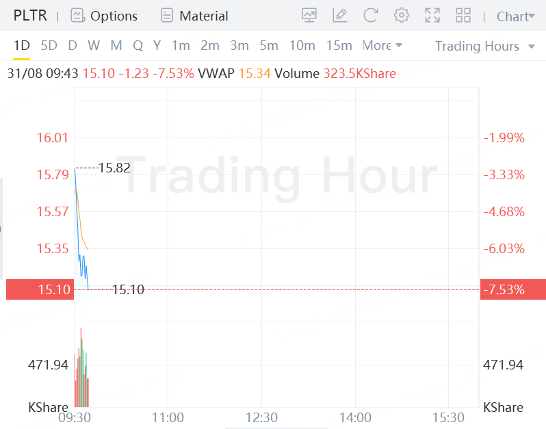 Palantir stock slides 7.5% in morning trading on Thursday.