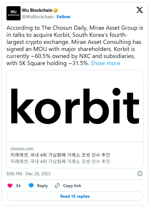 Mirae Asset Eyes Korbit in Potential $100M Crypto Exchange Deal