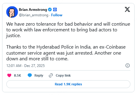 Coinbase Says Former Agent Arrested In India Over Exchange Hack