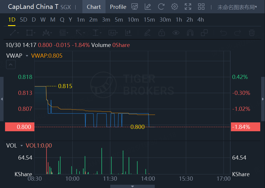 CapLand China T drops 1.84% at 2:17 pm, Oct 30.