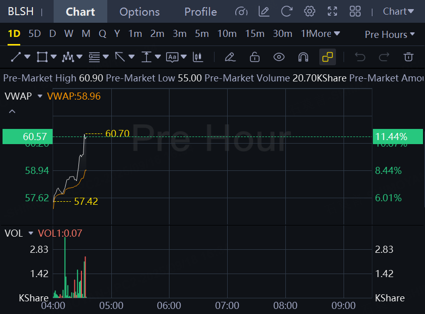 Bullish stock rose over 11% in premarket trading as it swung to a profit in its first quarterly report after becoming a public company.