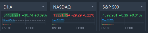 U.S. stocks mixed in morning trading.Dow Jones, S&P 500 rose 0.09% and 0.01% separately,while Nasdaq slid 0.22%.