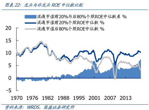 5、对盈利确定性和稳定性的追求是美股抱团的根本驱动。科技和消费长期优质的基本面表现长期占优;近40年美股龙头保持更高的ROE,提供更加长期的稳定回报,成为机构的抱团首选。