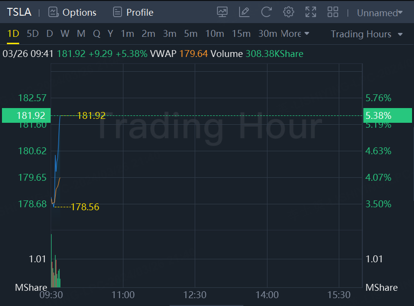 Tesla shares gained 5.4% in morning trading Tuesday.