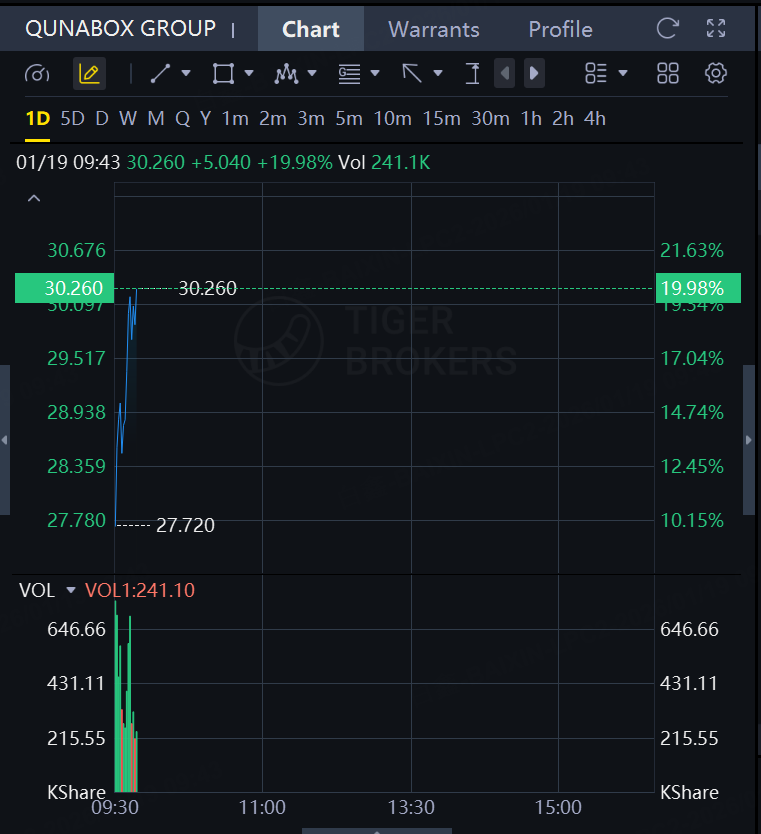 On January 19, QUNABOX GROUP surged by 20%! The company expects an annual net profit of up to 330 million yuan, achieving a turnaround from loss to profit compared to the previous year.