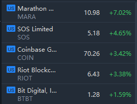 Some Crypto stocks remained high in morning trading, with Marathon Digital Holdings Inc rising over 7% and SOS Limited rising nearly 5%.