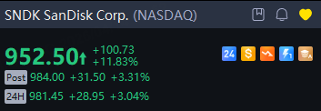 SanDisk Corp. stock jumped 3% in overnight trading after soaring 12% in previous trading day.