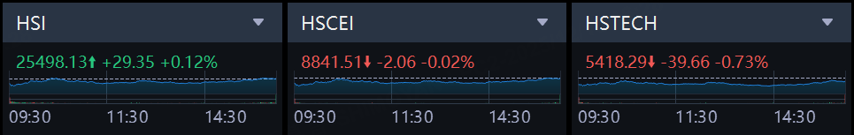 On December 18, 2025, the Hong Kong stock market closed with mixed results. The Hang Seng Index rose by 0.12%, the Hang Seng China Enterprises Index fell by 0.02%, the Hang Seng Tech Index fell by 0.73%, and the Hang Seng China-Affiliated Corporations Index fell by 0.26%.
