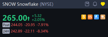 Snowflake forecast fourth-quarter product revenue above analysts' estimates but falls short of lofty investor expectations for stronger growth, sending its shares down about 8% in overnight trading.