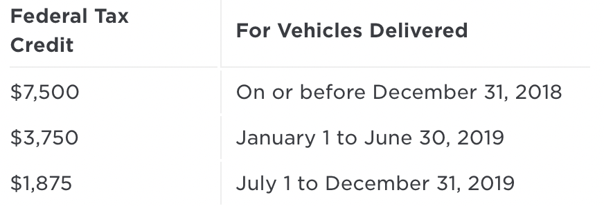 The EV tax credit also had a cap on how many cars a manufacturer could sell and still be eligible for the credit. Once a manufacturer surpassed 200,000 cars sold in the United States, their tax credits would be phased out over three years. Tesla hit the 200,000 car milestone in 2008. Its tax credits were phased out on the schedule shown below: