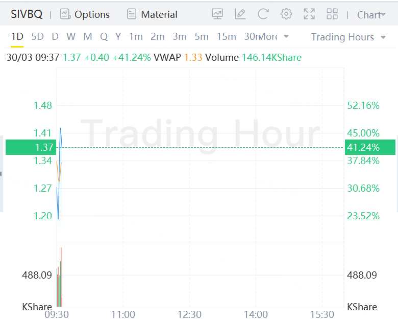 SVB Financial Group surges 42% in morning trading, while Signature Bank soars 19%.