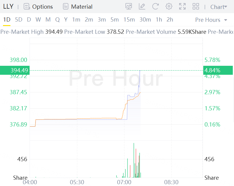 Shares of the U.S. drugmaker rose 4.84% before the bell.