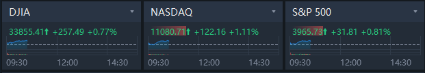 U.S. stocks took off in morning trading; Dow Jones rose 0.77%, S&P 500 gained 0.81% while Nasdaq jumped 1.11%.