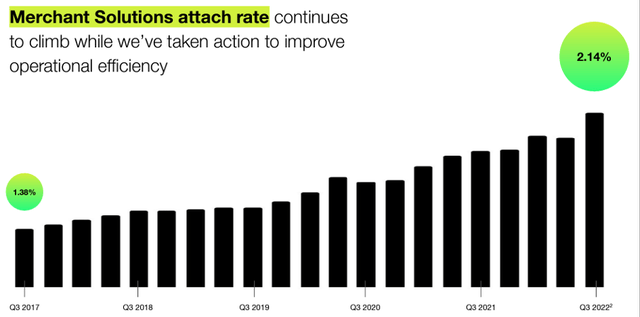The attach rate for merchant solutions has been steadily increasing and is likely to continue to rise with the company improving its operational efficiency.