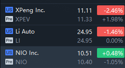 XPeng Inc., Li Auto and NIO Inc. mixed in premarket trading after posting their Q1 deliveries results.