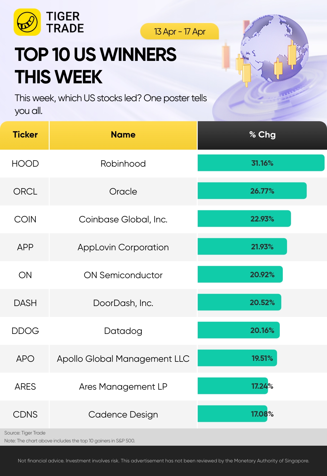 Below are top 10 S&P 500 stock gainers for the week ended Apr. 17: