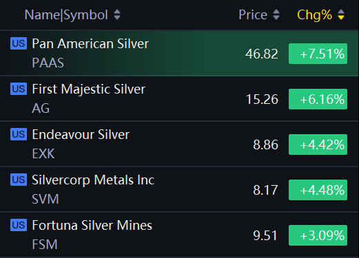 Gold and silver stocks rose on Tuesday. Pan American Silver up over 7%; First Magestic Silver up 6%; Silvercorp Metals up 4%.