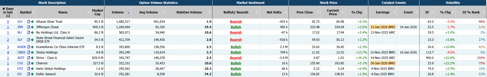 There are 1.68M SoFi option contracts traded on Monday, up 24% from the previous trading day. Call options account for 61% of overall option trades. Particularly high volume was seen for the $70 strike call option expiring January 16, 2026, with 73,302 contracts trading. $SLV 20260116 70.0 CALL$
