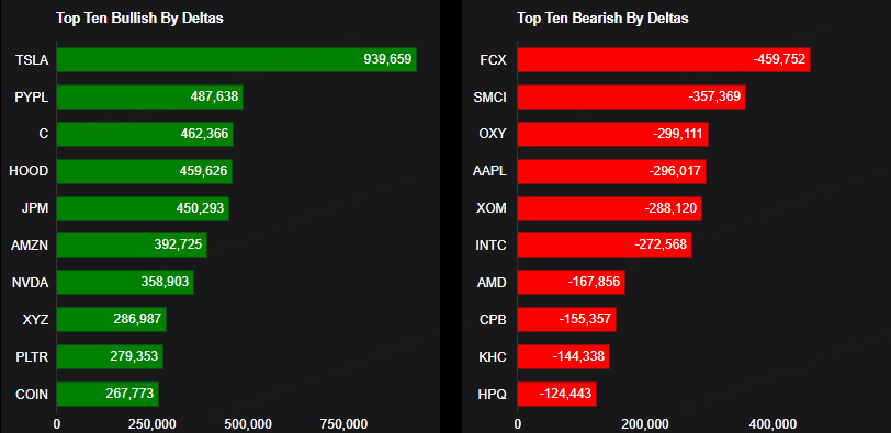 Based on option delta volume, traders bought a net equivalent of 939,659 shares of Tesla Motors stock. The largest bullish delta came from buying calls. The largest delta volume came from the 09-Jan-26 455 Call, with traders getting long 592,511 deltas on the single option contract.