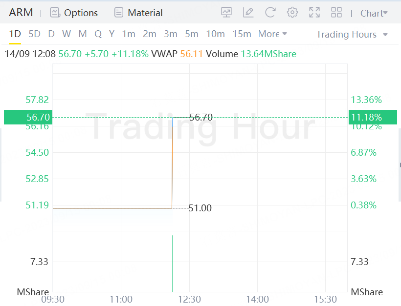 SoftBank-Backed Arm opened around $56.70, or 11.18% above $51 IPO price.