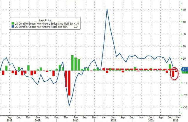 3月24日周五,美国商务部公布数据显示,美国2月耐用品订单环比初值-1%,低于市场预期的0.2%,是自2021年2月以来的最大降幅,但相比前值的-4.5%大幅回升。在1月份的数据暴跌之后,分析师们原本预计2月的数据将温和反弹。