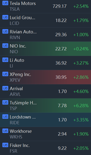 EV Stocks rallied in morning trading. Tesla, Lucid, Rivian, Li Auto, Xpeng Motors, Arrival, Tusimple and Lordstown climbed between 1% and 7%.