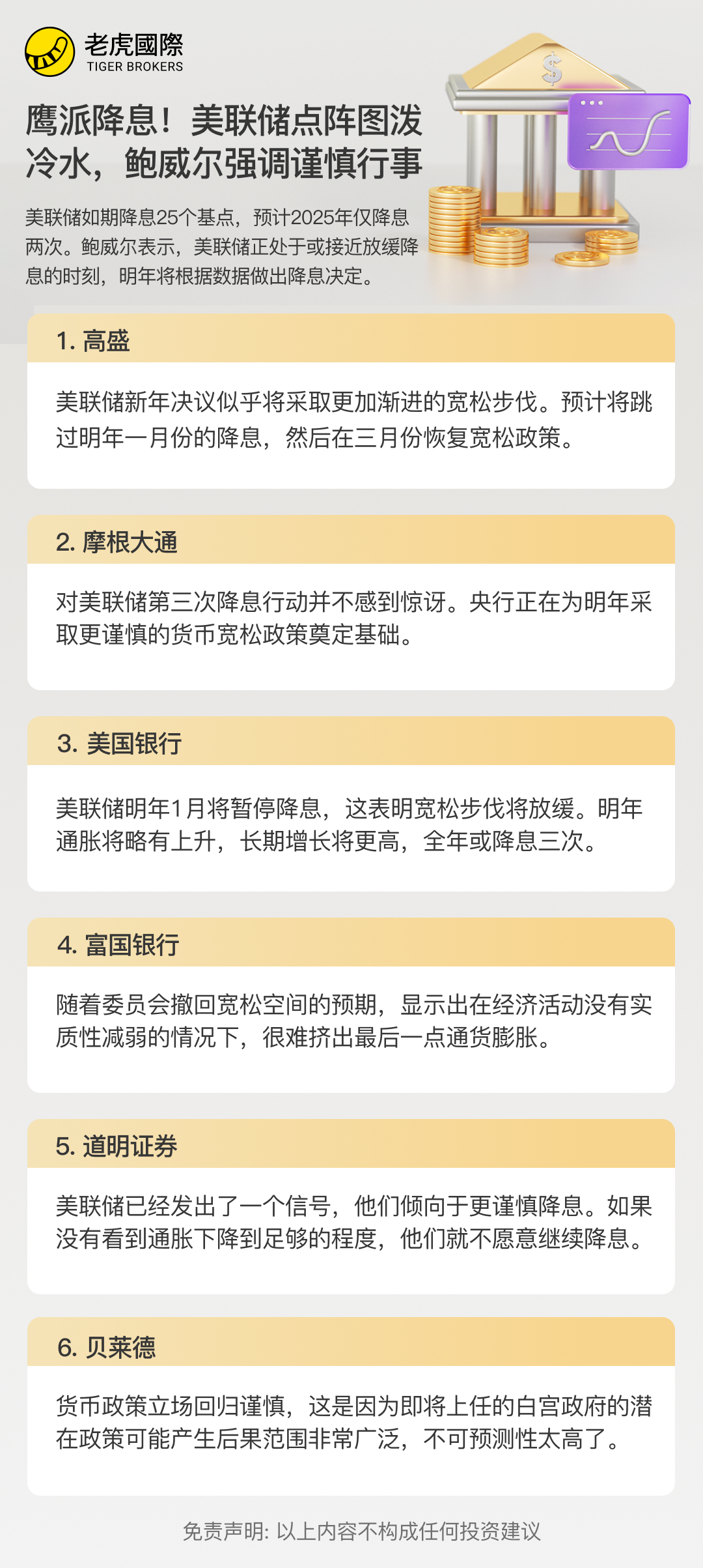 美联储决议结束后,华尔街普遍认为,这一步伐与美联储1月份可能暂停行动相一致,美联储甚至可能暂停更长时间,因为他们需要时间来评估经济状况以及新任总统出台的任何新政策的影响。