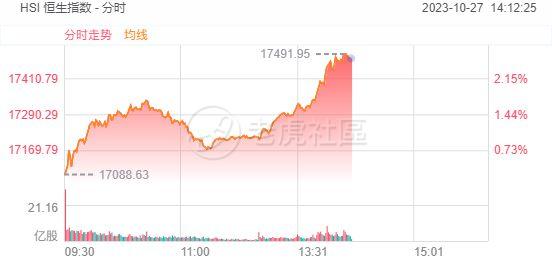 10月27日,港股午后持续上扬,恒指涨超2%,药品股表现强势,中国生物制药涨超10%领涨成分股。