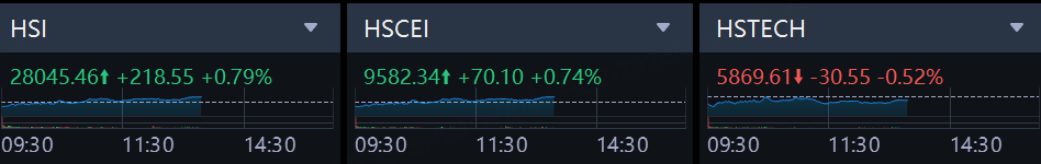 The Hang Seng Index rose 0.79 per cent to 28,045, after losing as much as 0.8 per cent. The benchmark gained 2.6 per cent to hit a 4.5-year high on Wednesday. The Hang Seng Tech Index dropped 0.52 per cent.