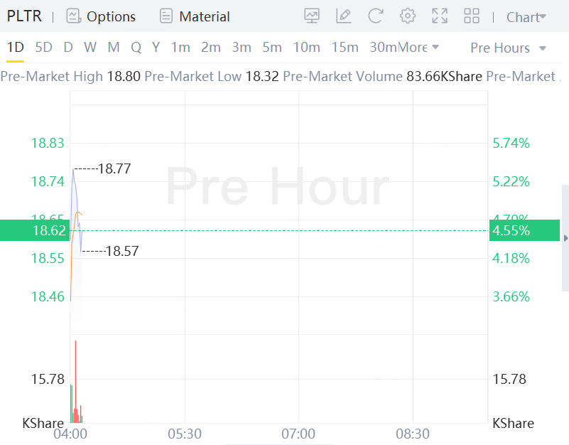 Palantir Technologies Inc. gained 4.55% in premarket trading.