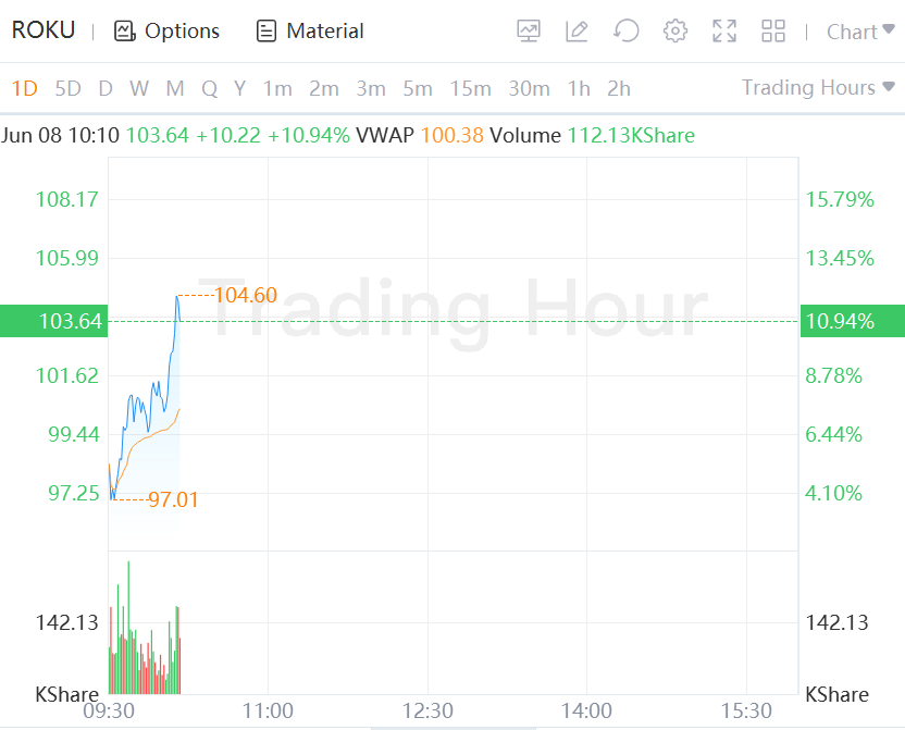 Roku shares gained more than 5% in premarket trading to $98.30, while Netflix (NFLX) fell slightly more than 1% to $196.51.